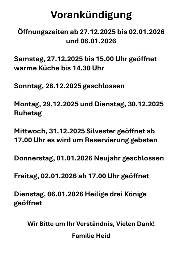 Öffnungszeiten ab 27.12.2025